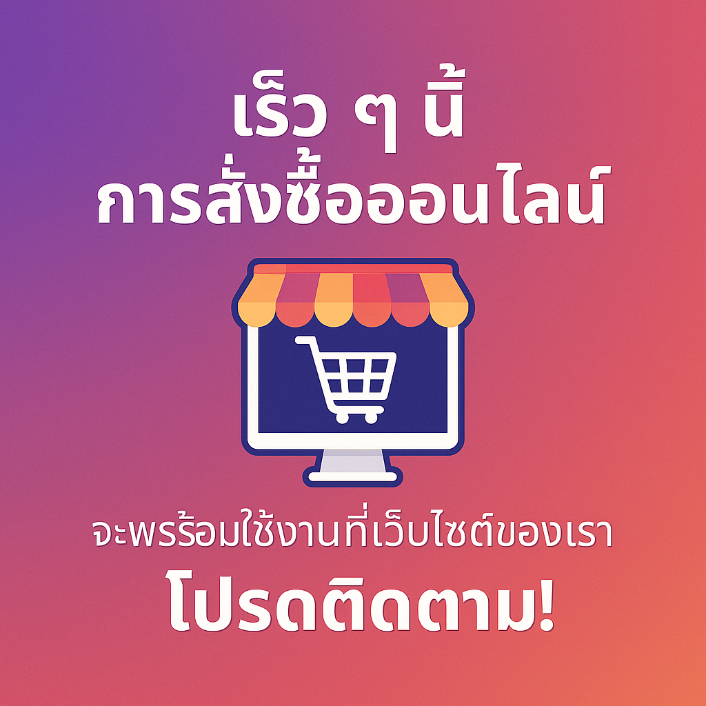 เร็ว ๆ นี้ การสั่งซื้อออนไลน์จะพร้อมให้บริการ!